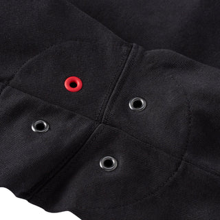 - Four functional metal armpit grommets for breathability — one in signature brand red