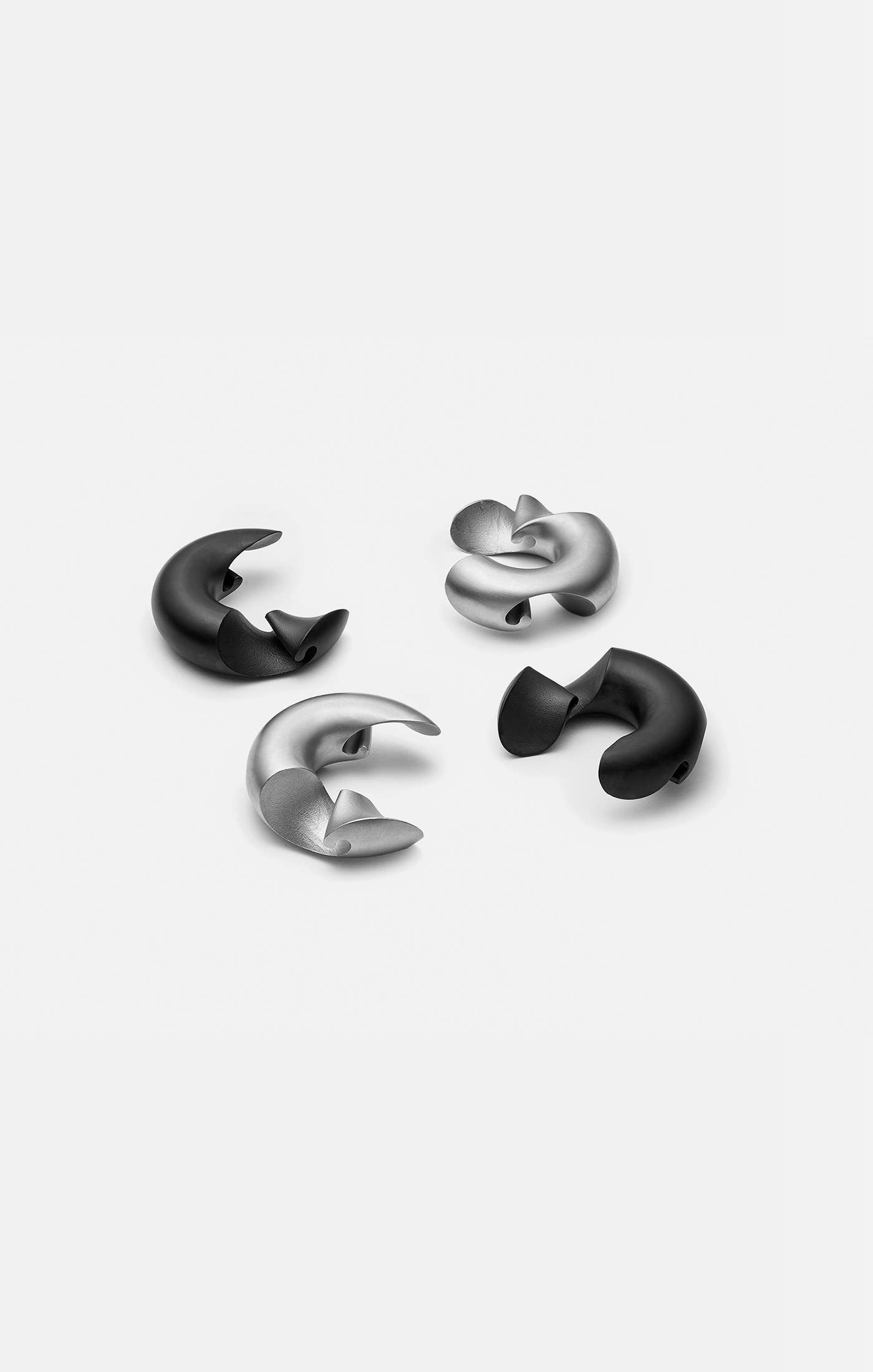 Four heavy steel pieces interlock to create a modern masterpiece of mechanical puzzles.