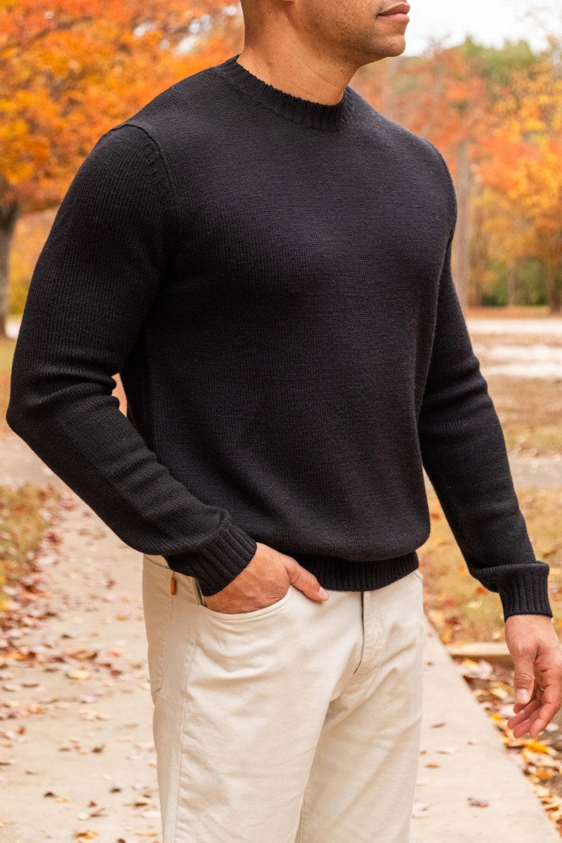 Black Merino Wool Crewneck Jersey – 100% Merino