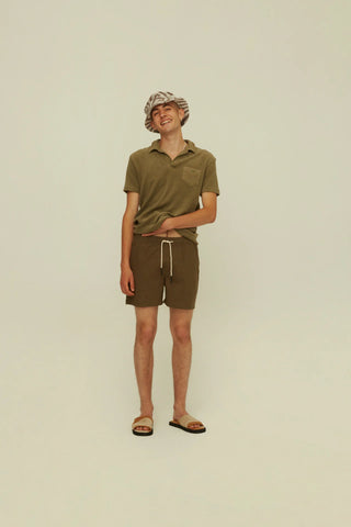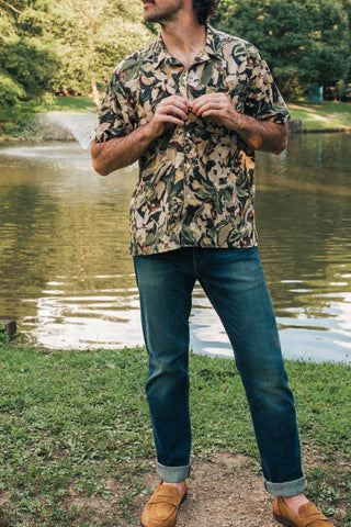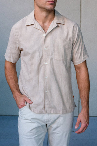 Tan and Ivory Stripe Cotton Linen Camp Collar