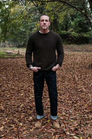 Dark Timber Mohair and Wool Blend Crewneck Sweater