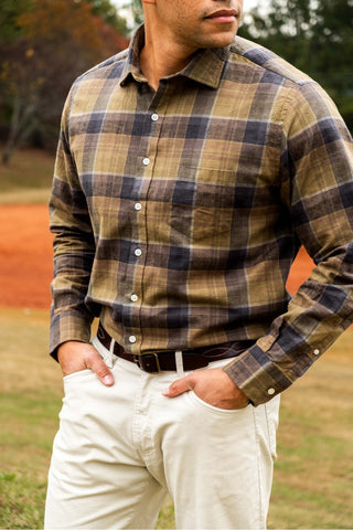 Plaid Green, Black and White Flannel Shirt