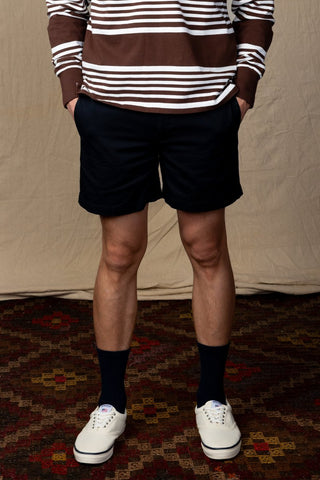 Navy Cotton Tab Front Tie Shorts